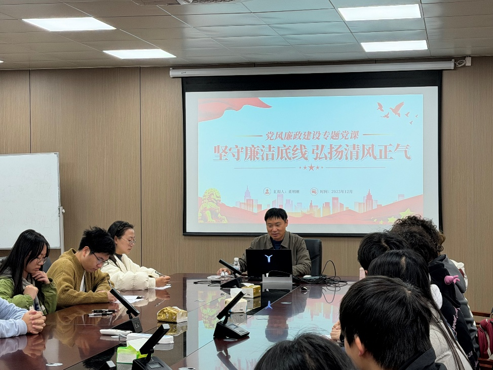为切实增强本科生党员纪律规矩观念,2025年12月10日中午,qy千亿国际董明刚院长在07424为学院本科生第一党支部全体党员讲授了一堂深刻生动的廉政专题党课。