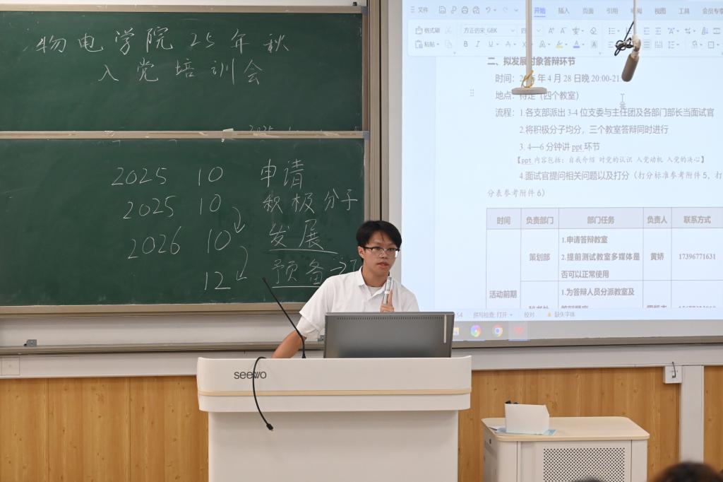 2025年10月11日中午,qy千亿国际在05306教室召开2025年入党积极分子培训会。会议由学院党务中心主任刘光崎同学主持,全体入党积极分子参加。 培训会上,通过分享学生党员在科研创新中勇攀高峰、在志愿服务里无私奉献的优秀事迹,生动展现了学生党员的先进性和示范引领作用。 随后,讲解了党员的权利和义务,告诉大家党员享有参加党的会议、阅读党的文件、接受党的教育培训等权利,同时必须履行认真学习党的理论、贯彻执行党的基本路线、发挥先锋模范作用等义务。并且指出权利和义务是辩证统一的,入党积极分子要从现在开始就以党员标准严格要求自己。 此次培训为入党积极分子搭建了学习交流的平台,进一步加深了同学们对党的认识。大家纷纷表示,将以此次培训为契机,认真学习党的理论知识,明确党员的权利和义务,熟悉发展党员流程,不断提升自身思想政治素质,在实践中锤炼党性修养,以实际行动践行入党初心,努力为党和国家的事业贡献青春力量。 现场图片(一) 现场图片(二) (一审:夏琳,二审:蒋琼,三审:秦勤忠)