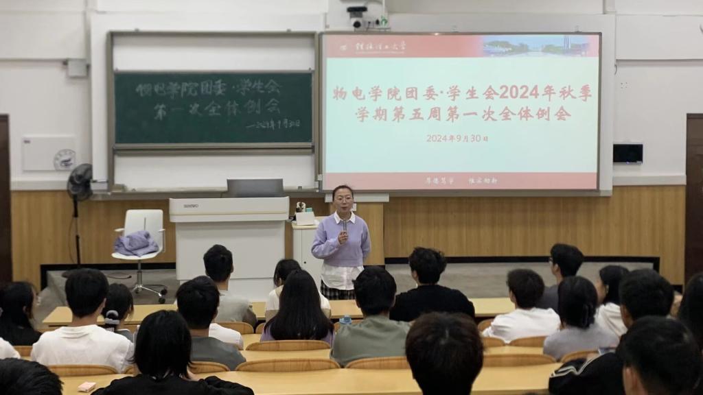 2024年9月30日12:20至13:10,qy千亿国际团委、学生会在06104教室组织召开第五周全体例会。会议由唐伟程同学主持,学院团委书记姚倩老师出席,团委·学生会全体成员参加。