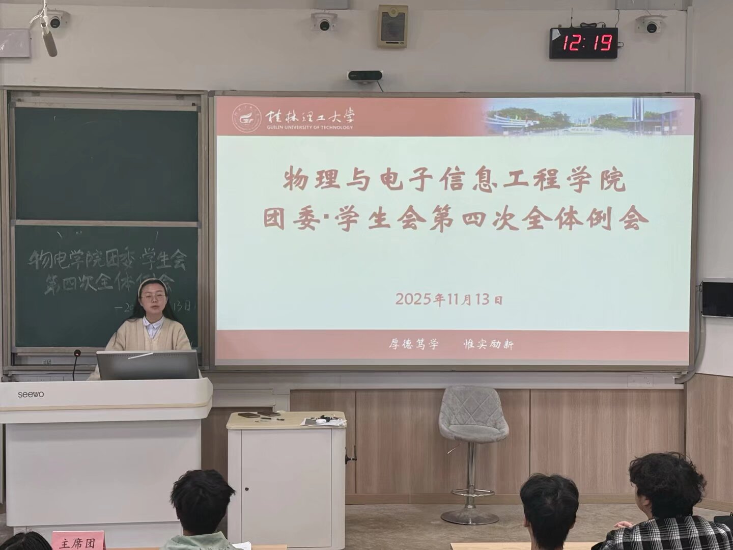 2025年11月13日中午,qy千亿国际团委、学生会在07319教室召开秋季学期第十周全体例会。会议由田波同学主持,学院团委书记姚倩老师出席,全体成员参会。