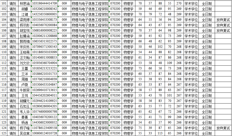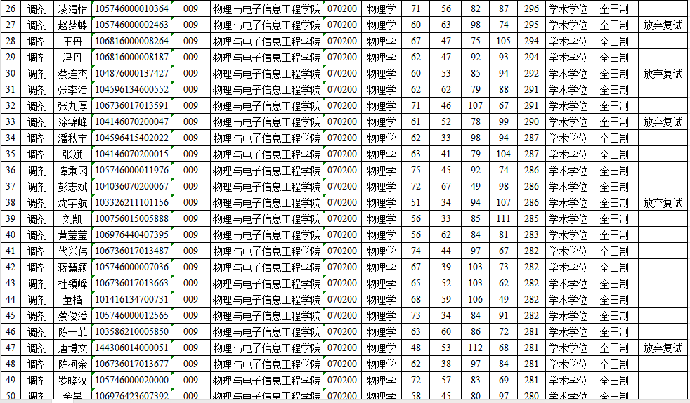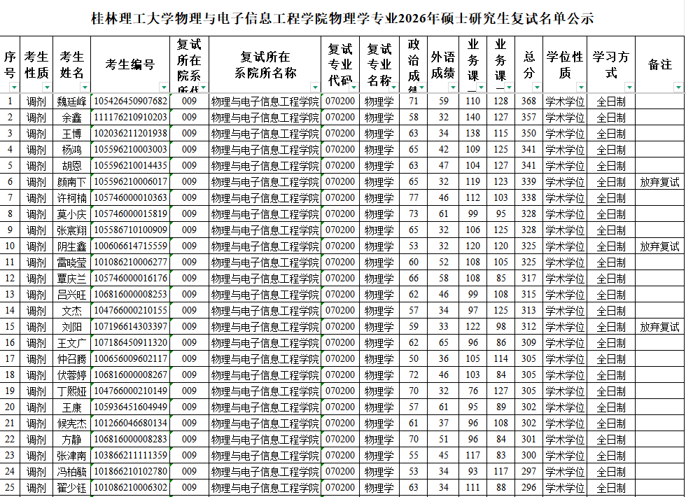 qy千亿国际qy千亿国际物理学专业2026年硕士研究生复试名单公示
