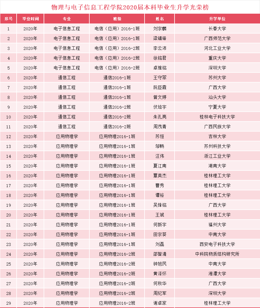 qy千亿国际2020届本科毕业生升学光荣榜