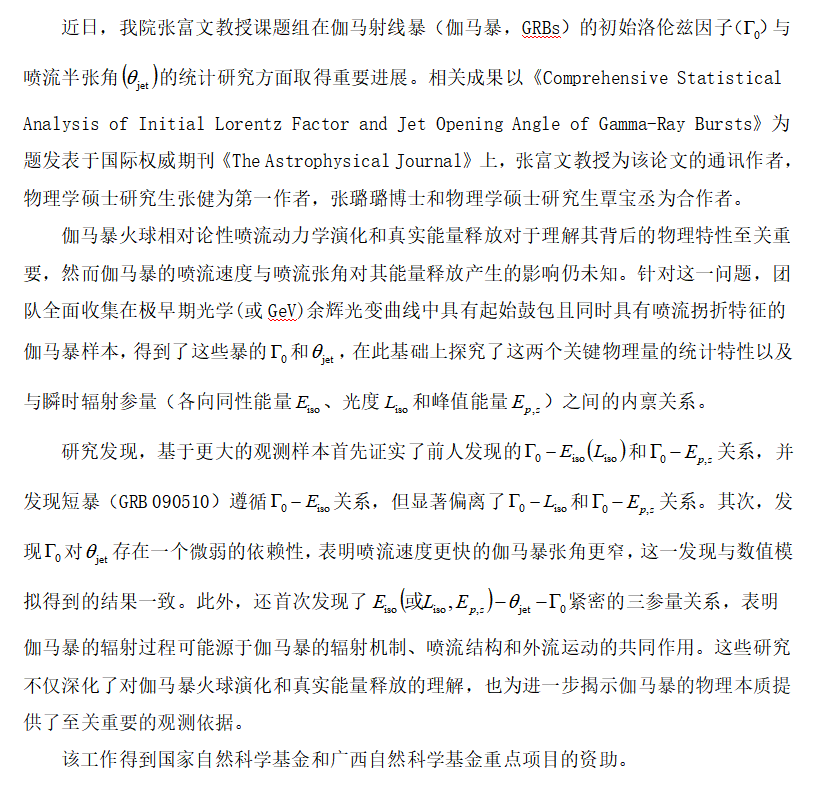 qy千亿国际张富文教授团队在《The Astrophysical Journal》发表伽马射线暴研究领域最新研究成果